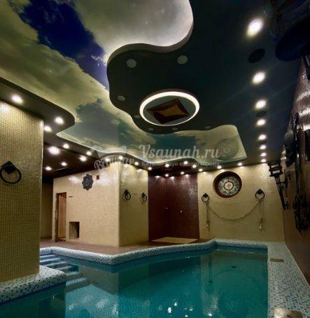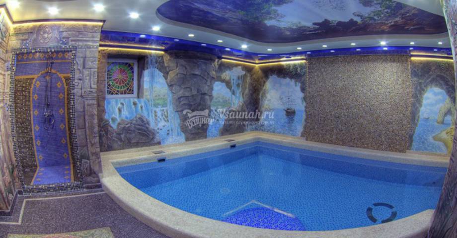 Бассейн, Теплый бассейн, Гейзер, Водопад, Подсветка,